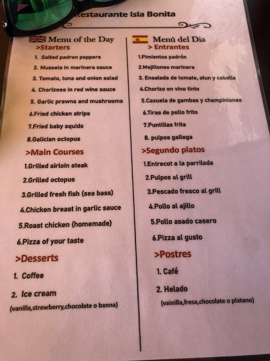 “ We visited Isla Bonita for our evening meal whilst staying in Playa Blanca. After bantering with the maitre d all week, we decided to give it a shot. The waiters are very attentive and happy to answer any questions. We ordered the lamb chops and sirloin steak with mushroom sauce. We particularly liked how dishes could come with chips, canary potatoes or a jacket potato, where a lot of restaurants only serve chips. The portion of steak was huge, so was decently priced and very enjoyable. The dishes came with cooked vegetables and crispy onion which was also good. Overall we had a good experience here, and is ideal for both small and large groups. Thank you! ”